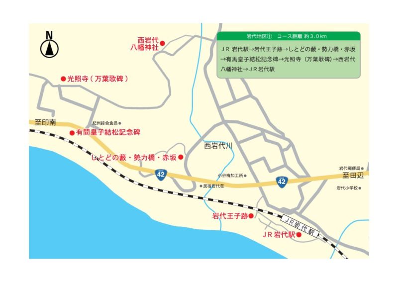 みなべ観光ガイドの会の岩代地区のルートマップ